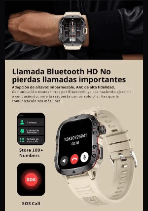 "Este smartwatch te permite monitorear tu salud, recibir llamadas y notificaciones, y disfrutar de resistencia al agua y GPS, todo en un diseño moderno y adaptable a tu estilo."